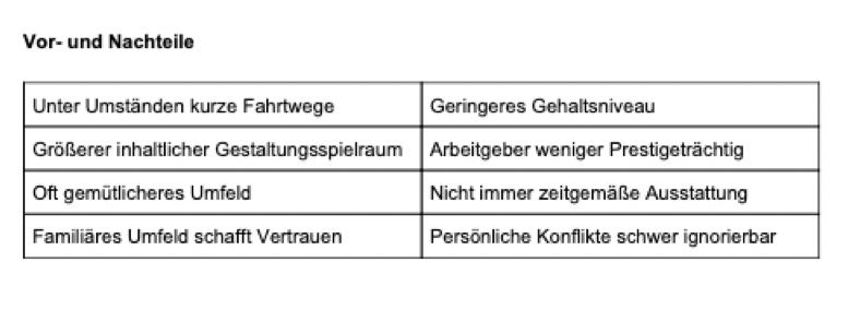 Wichtig ist bei kleinen bis sehr kleinen Beratungsunternehmen die Struktur des Unternehmens zu sondieren. Wichtig ist darauf zu achten, dass der Berater eine langfristige Zusammenarbeit auch plant. Es kommt auch vor, dass sich gestandene Berater oder Berufseinsteiger (d.h. nach Bestehen des Examens) nur für eine gewisse Übergangszeit selbstständig machen und auch nur für diese Zeit Personal suchen. Es wäre ungünstig seine sichere Festanstellung zu kündigen und bei einem Unternehmen anzufangen, dass es in wenigen Monaten vielleicht nicht mehr gibt. Die vorher im Text herausgearbeitete mögliche Flexibilität sollte nicht Allgemeingültige Geheimwaffe der kleinen Beratungen verstanden werden – klein bedeutet nicht automatisch flexibel. Es ist emfehlenswert im Gespräch genau darauf zu achten, wie der Berater seine Mitarbeiter sieht (“Für irgendwen müssen Sie ja arbeiten” vs “ich freue mich, dass Sie für mich arbeiten”).